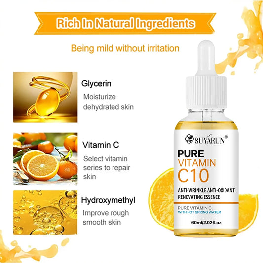 SUYARUN 10% Vitamin C Serum for Face - Brightening Anti-Aging Treatment, Dark Spot Corrector with Hyaluronic Acid & Vitamin E.