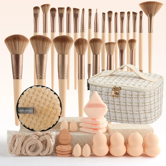 44 piece beige small fragrance style large capacity makeup brush set, handheld toiletry storage bag, portable for going out